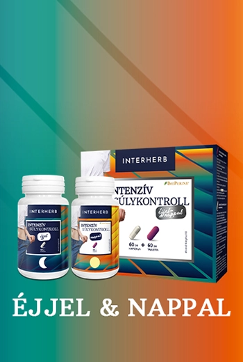 A termékcsalád készítményei közül az INTERHERB Intenzív Súlykontroll Éjjel & Nappal kétkomponensű készítmény notifikált étrend-